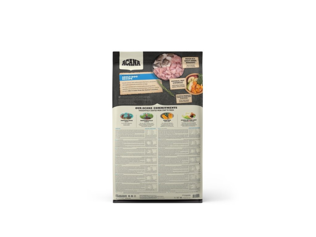 Připravováno v oceňovaných kuchyních v Kanadě. Acana Dog Heritage Adult překypuje čerstvými místními surovinami včetně volně chovaných kuřat, vajec z hnízdních chovů, platýse loveného volně v přírodě a na slunci zrajícího ovoce a zeleniny - všechny suroviny dodávají výživu a chutnost a zajišťují tak vrcholovou kondici vašeho psa.