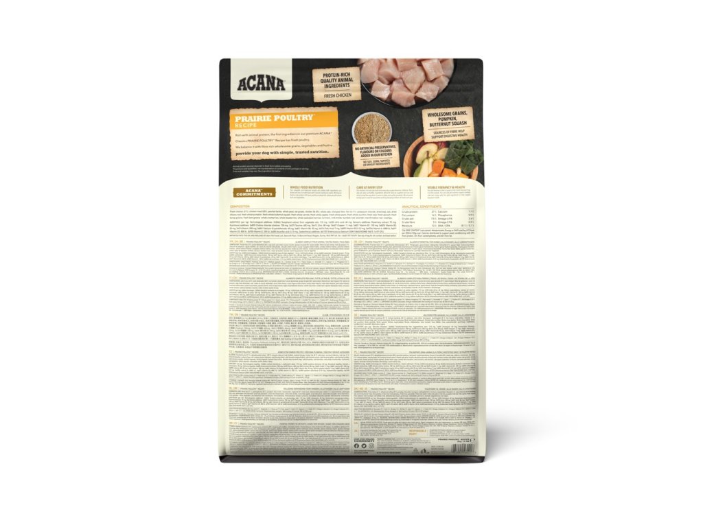 ACANA Dog Classics Prairie Poultry je krmivo vhodné pro psy každého věku i rasy. Má velmi rozmanité a bohaté složení a nízkou glykemickou zátěž. Obsahuje 50% masa a mrazem sušená játra ve stylu krmiva celá kořist.