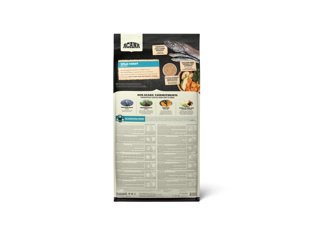 Syrový losos (22 %), sleďová moučka (19 %), perličkový ječmen, celý hrášek, ovesné kroupy, vepřový tuk (8 %), celý oves, cizrnová vláknina, rybí tuk (1 %), uhličitan vápenatý, chlorid draselný, sušená chaluha, sůl, sušený kořen čekanky, celá čerstvá dýně, čerstvá celá máslová dýně, čerstvá celá mrkev, celá čerstvá jablka, čerstvé celé hrušky, čerstvá celá cuketa, čerstvá kapusta, čerstvý špenát, čerstvé listy tuřínu, čerstvé listy červené řepy, celé brusinky, celé borůvky, celé plody muchovníku, kurkuma, ostropestřec, kořen lopuchu, levandule, kořen ibišku, šípky.