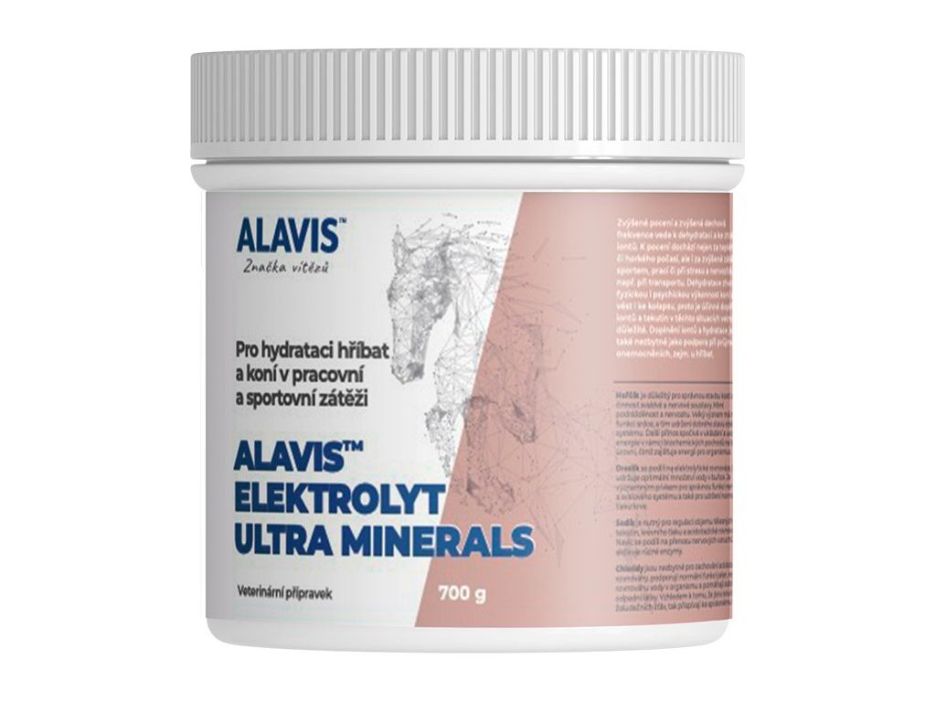 Před zvýšenou zátěží či před transportem podejte ALAVIS™ Elektrolyt ultra minerals 1-2 hodiny předem. Zamíchejte (2-4 odměrky) 35-70 g přípravku do 4 litrů vody.