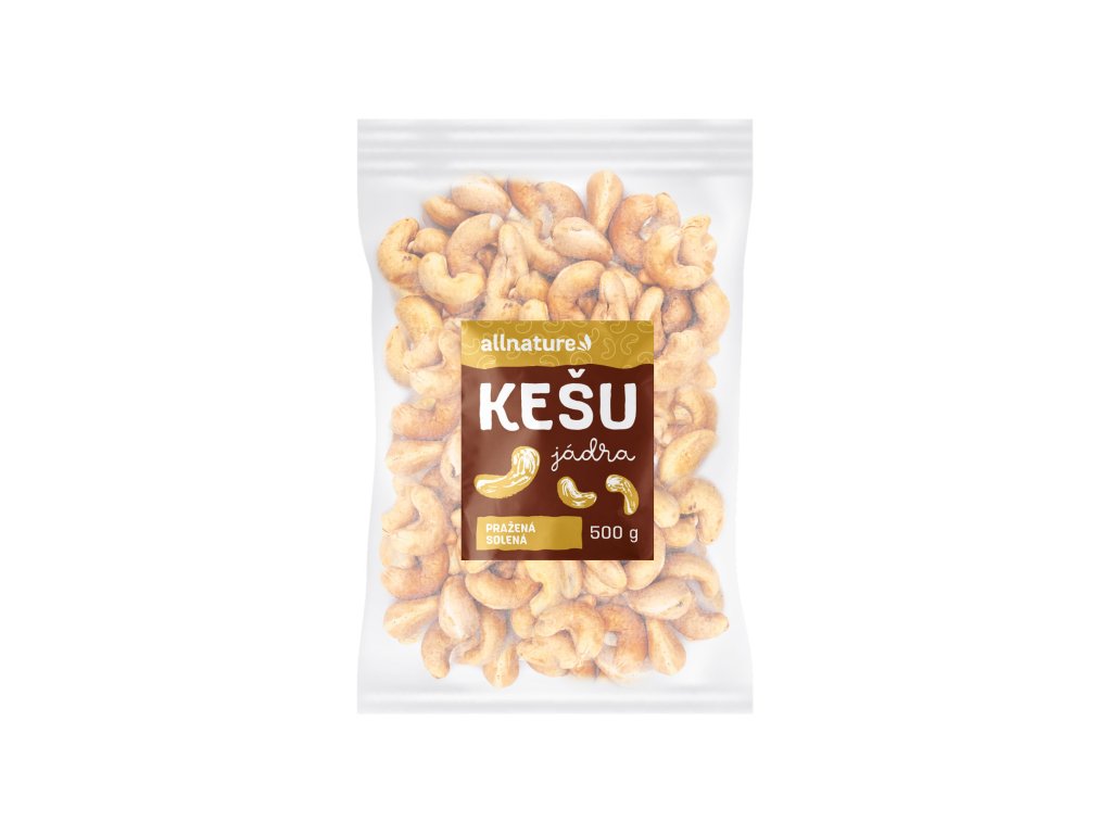 Kešu ořechy organismu dodávají řadu vitamínů jako A, B či E, minerálních látek, nenasycených mastných kyselin i bílkovin. Nyní jsou dostupné v slané variantě, která je výborná jako přísada do různých dezertů, jiných sladkých i slaných pokrmů, k výrobě vynikajícího kešu krému nebo jen tak na mlsání. Upozornění: Alergeny: Kešu. Může obsahovat stopy arašídů, skořápkových plodů, sezamu a oxidu siřičitého. Složení: Kešu jádra (96 %), rostlinné oleje – palmový olej, slunečnicový olej (3 %), sůl (1 %). Obsah: 500 g Výrobce: Allnature s.r.o., Březhradská 148, 503 32 Hradec Králové, Česká republika. Výživové údaje na 100 g: Energetická hodnota 2533 kJ/605 kcal Tuky- z toho nasycené mastné kyseliny 47,8 g8,5 g Sacharidy- z toho cukry 26,6 g5,0 g Bílkoviny 16,8 g Sůl 1,0 g