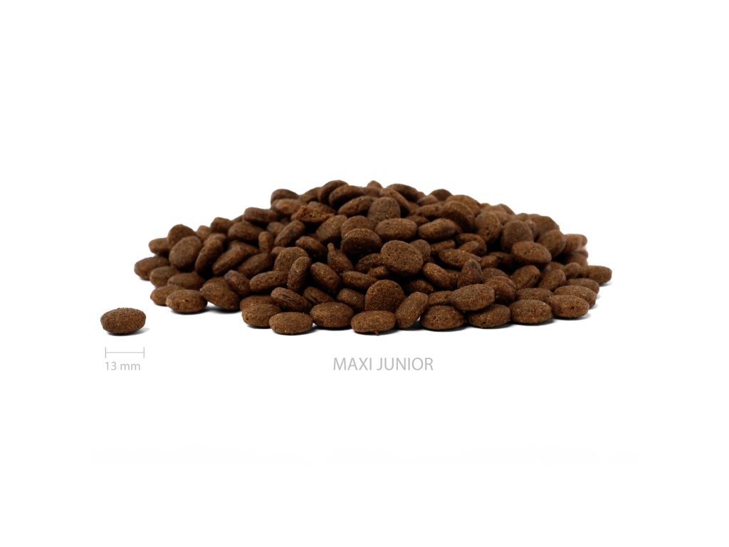 Granule ALMI Maxi Adult nabízí komplexní výživu díky vyváženému složení s 71 % živočišného proteinu. Obsahují čerstvé rybí maso ze sledě a hovězí maso, doplněné o hrách, jablka...