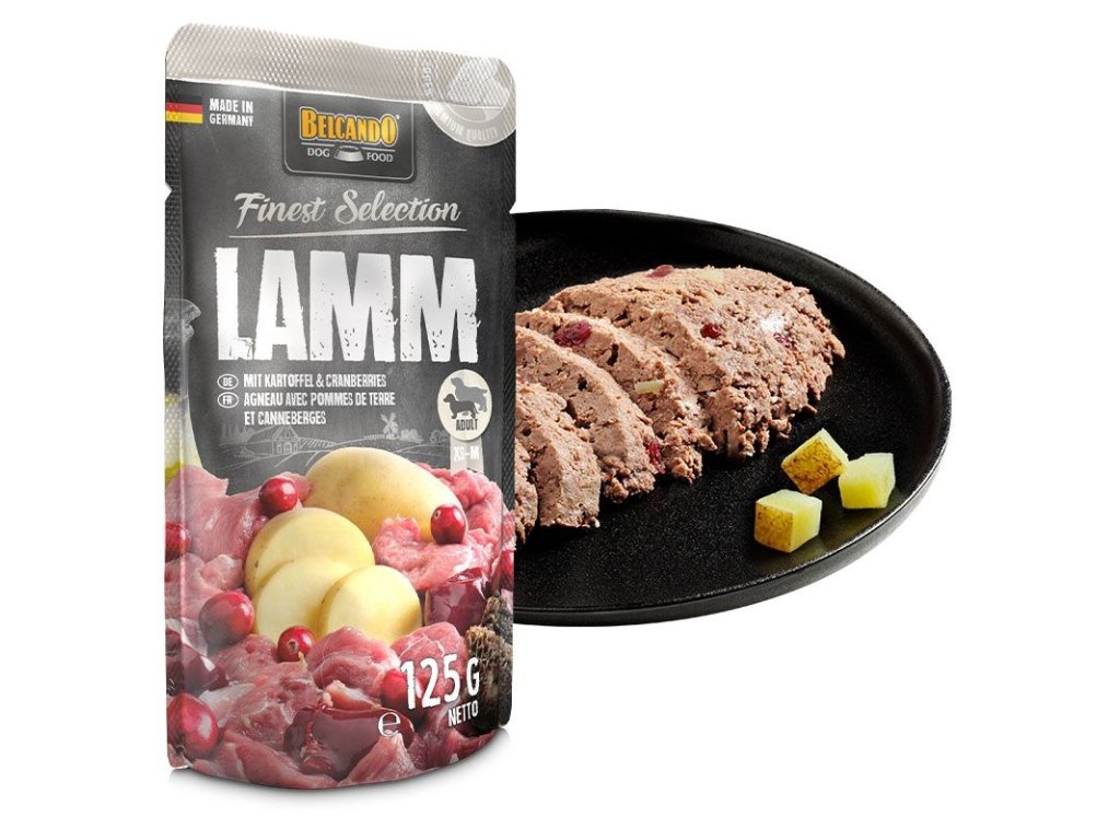 Vybraná směs voňavého jehněčího masa, plných brambor a lehce nakyslých brusinek v masových kapsičkách Belcando ozvláštní menu všech psů a posílí jejich vitalitu a zdraví.