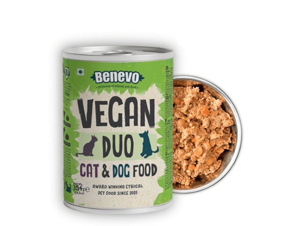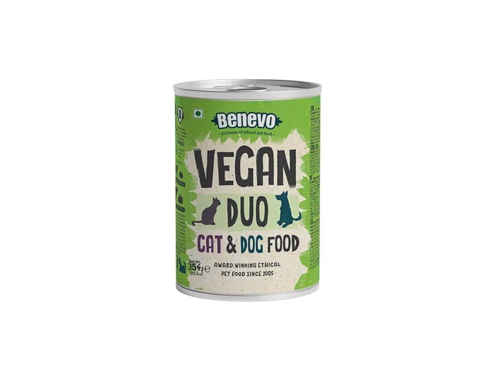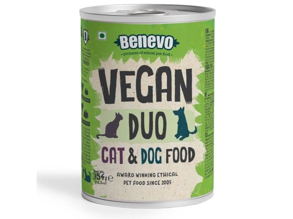 Benevo Duo je prémiové vegetariánské/veganské mokré krmivo pro psy a kočky, vyrobené z čerstvých surovin.Vyrobeno z brambor, mrkve, hrášku, rajčat a bobulového ovoce spolu s hnědou rýží tak, aby vzniklo chutné a výživné krmivo.