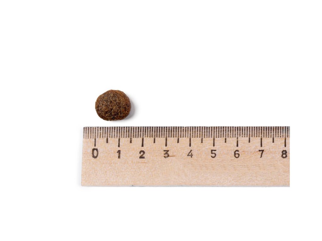 Analytické složky: Hrubý protein 25 %, hrubý tuk 8 %, hrubá vláknina 3,5 %, hrubý popel 8 %, vlhkost 8 %, NFE 47,5 %, energetická hodnota 340 kcal/ 100g, vápník 1 %, fosfor 0,9 %, Omega 6 mastné kyseliny 1,4 %, Omega 3 mastné kyseliny 4 %