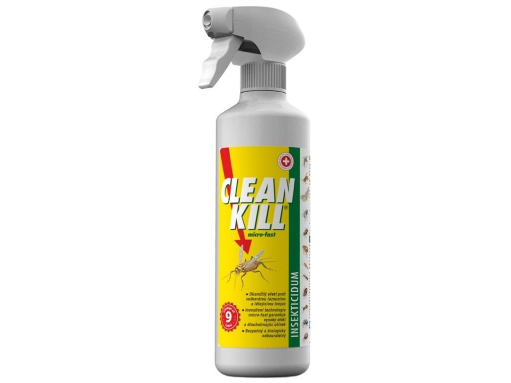 Clean Kill antiparazitní sprej udrží v bezpečí vašeho mazlíčka i váš domov před obtížným hmyzem. Inovativní patentovaná dvousložková receptura způsobí okamžitý knock-down efekt (= okamžité uhynutí) širokého spektra hmyzu. Clean Kill působí kontaktně s okamžitým a dlouhotrvajícím účinkem proti veškerému lezoucímu a létajícímu hmyzu včetně much domácích, komárů, švábů, mravenců domácích, rybenek, štěnic, klíšťat, blech, molů, roztočů, termitů, vos, domácích pavouků a vší po dobu až 9 týdnů.