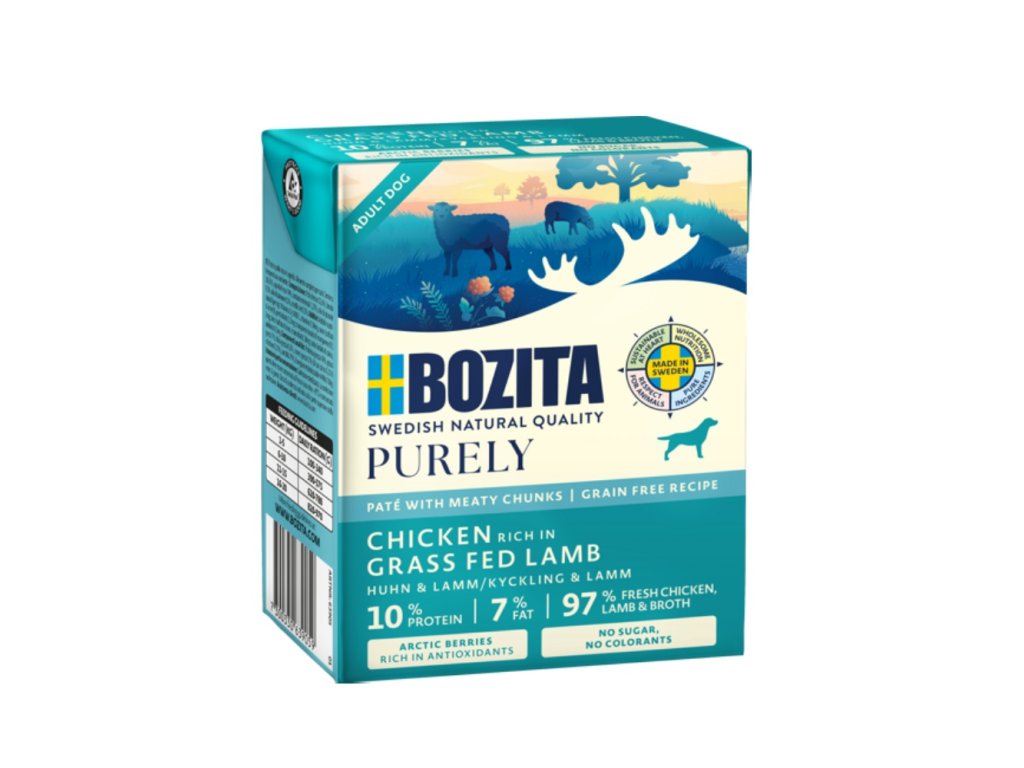 Vysoce kvalitní superprémiová paštika s kousky pro psy s hovězím a sobem.