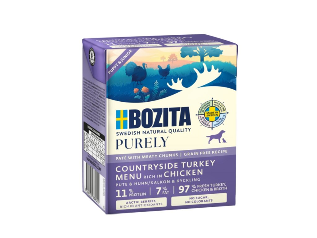 Vysoce kvalitní superprémiová paštika s kousky pro psy s kuřecím a zvěřinou.