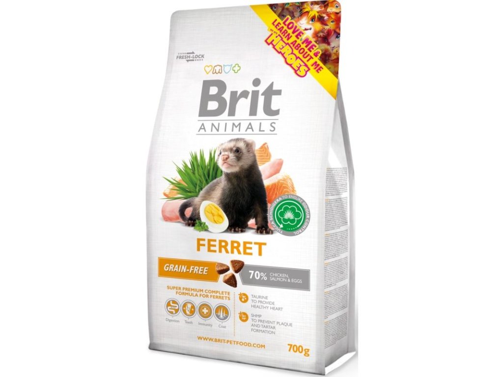 Superprémiové bezobilné kompletní krmivo pro fretky. Obsahuje juku schidigeru pro snížení zápachu exkrementů. Obsahuje taurin pro zdravé srdce. Obsahuje hexametafosfát sodný, který preventivně působí proti zubnímu plaku a kameni.