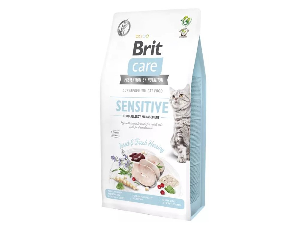 Kompletní krmivo pro dospělé kočky. Bezobilná hypoalergenní receptura pro kočky s potravinovou intolerancí. Bohatá na Omega-3 a Omega-6 mastné kyseliny pro zdravou kůži a lesklou srst. Hmyzí protein podporuje zdravé trávení a snižuje riziko potravinových alergií. Nový udržitelný zdroj proteinu s nízkou uhlíkovou stopou. Složení:čerstvý sleď (26 %), žlutý hrách (23 %), dehydrovaný sleď (20 %), dehydrovaný hmyz (14 %), kokosový olej (konzervovaný tokoferoly, 8 %), olej ze sleďů (2 %), přírodní chuť hydrolyzovaných jater (2 %), sušená jablka (2 %), lněné semínko (1 %), sušený srdečník (0,5 %), sušený heřmánek (0,5 %), hrachová mouka, sušený rakytník řešetlákový (0,3 %), sušené brusinky (0,2 %), frukto-oligosacharidy (0,015 %), mannan-oligosacharidy (0,015 %), juka schidigera (0,008 %), Lactobacillus acidophilus HA – 122 inaktivováno (15x109 buněk/kg). Analytické složky:hrubý protein 34,0 %, hrubý tuk 16,0 %, hrubá vláknina 1,2 %, hrubý popel 8,2 %, vlhkost 10,0 %, omega-3 mastné kyseliny 0,8 %, omega-6 mastné kyseliny 2,2 %, vápník 1,1 %, fosfor 0,8 %, sodík 1,0 %, hořčík 0,1 %. Nutriční složení:vitamín A (3a672a) 20000 IU, vitamín D3 (3a671) 800 IU, vitamín E (3a700) 600 mg, vitamín C (3a312) 300 mg, taurin (3a370) 2500 mg, L-karnitin (3a910) 50 mg, cholinchlorid (3a890) 2500 mg, biotin (3a880) 2 mg, vitamín B1 (3a821) 10 mg, vitamín B2 (3a825i) 12 mg, niacinamid (3a315) 50 mg, D-pantothenan vápenatý (3a841) 40 mg, vitamín B6 (3a831) 10 mg, kyselina listová (3a316) 2 mg, vitamín B12 0,04 mg, zinek (3b606) 120 mg, železo (3b106) 45 mg, mangan (3b504) 55 mg, jodid draselný (3b201) 4 mg, měď (3b406) 10 mg, selen (3b810) 0,2 mg, L-methionin 2000 mg. Obsahuje přírodní antioxidanty schválené EU: tokoferolové extrakty z rostlinných olejů (1b306(i)), askorbyl-palmitát (1b304) a výtažek z rozmarýnu. Metabolizovatelná energie: 3,860 kcal/kg