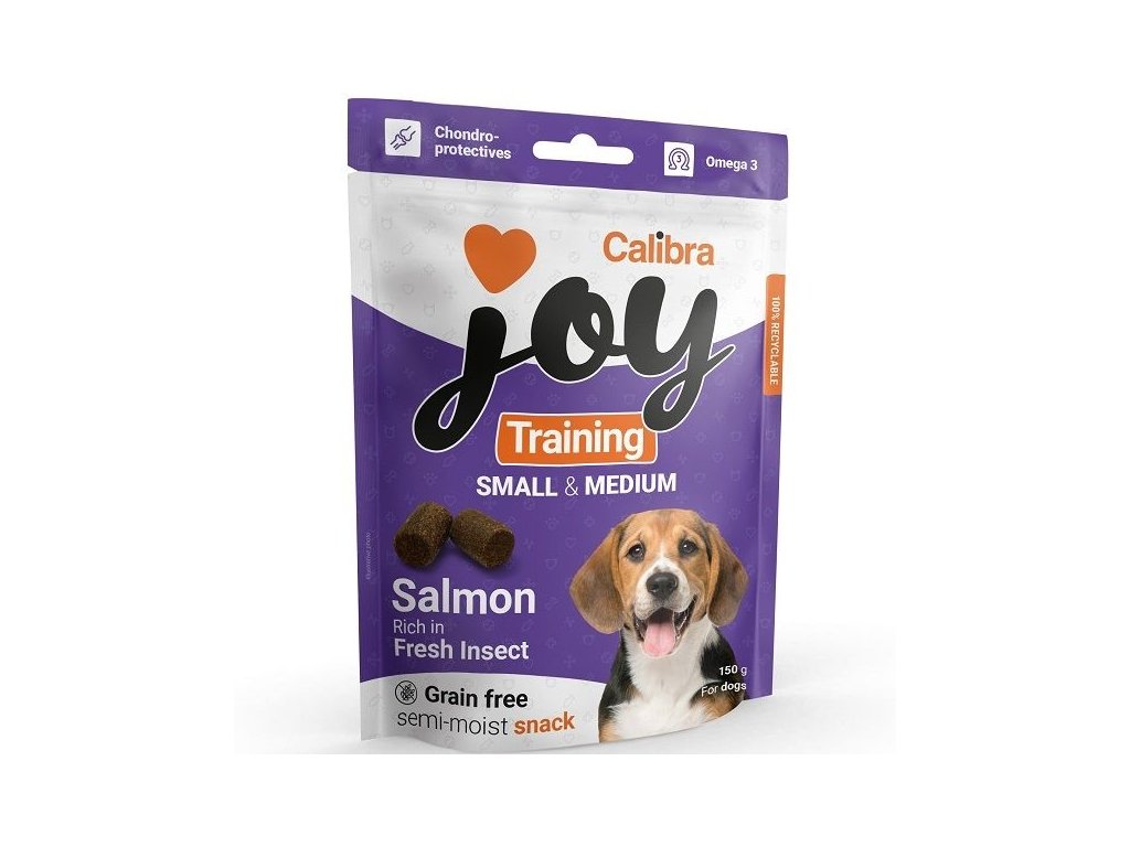 Receptura s lososem a hmyzem obsahuje vysoké množství masa a je bez obilovin. Tréninkové polovlhké pamlsky jsou ideální pro výcvik, sport a výchovu. Velikost jednotlivých pamlsků je menší až střední, skvěle tudíž zafungují jako odměna pro všechny velikosti plemen. Psům skvěle chutnají a jsou výborně stravitelné. Doplňkové krmivo pro psy je obohaceno o chondroprotektiva a omega 3. Receptura bez kuřete.