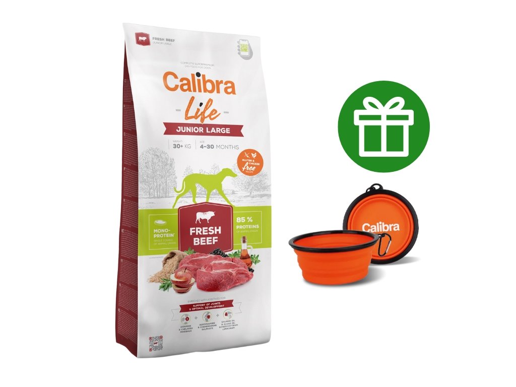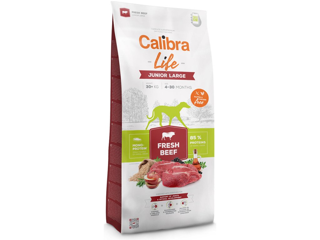 Granule Calibra Dog Life Junior Large Fresh Beef s čerstvým hovězím pro mladé psy (4–30 měsíců) velkých plemen (nad 30 kg) jsou skvěle stravitelné a vhodné i pro citlivé zažívání. Hovězí receptura je 100% monoproteinová, obsahuje 85 % proteinů živočišného původu. Neobsahuje lepek ani kuřecí. Vybraná funkční aditiva přispívají k podpoře kloubů a napomáhají optimálnímu vývoji velkého psa.
