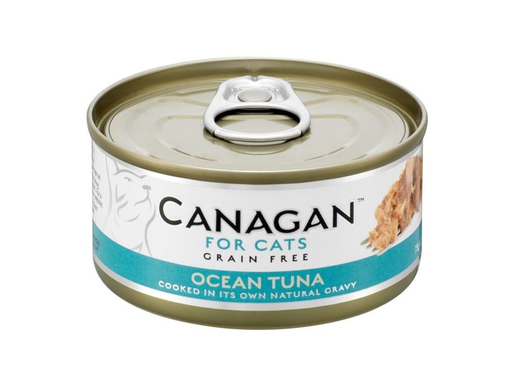 Canagan Cat Tuna – je kompletní krmivo pro kočky. Vyrobené je z masa z tuňáků, kteří jsou volně lovení metodou šetrného odchytu na udici. Tuňák je vařený ve vlastní šťávě pro zachování vysoké výživové hodnoty krmiva.Stejně jako v ostatních výrobcích značky Canagan, ani v těchto konzervách pro kočky nenajdete žádné obiloviny.Konzervu můžete Vaší kočce podávat samostatně nebo v kombinaci s granulemi, nezapomeňte však upravit podávané množství.