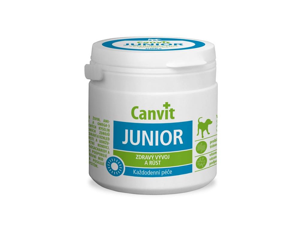 Doplněk stravy Canvit Junior podporuje zdravý vývoj a růst štěňátek a mladých psíků.Štěňata během svého růstu vyžadují zvýšený příjem vitamínů, minerálů, aminokyselin a dalších esenciálních živin, které podporují zdravý růst. Pomáhá ke správné funkčnosti mozku, paměti, zažívacího a trávicího aparátu. Ideální doplněk pro každodenní péči při snížené obranyschopnosti.