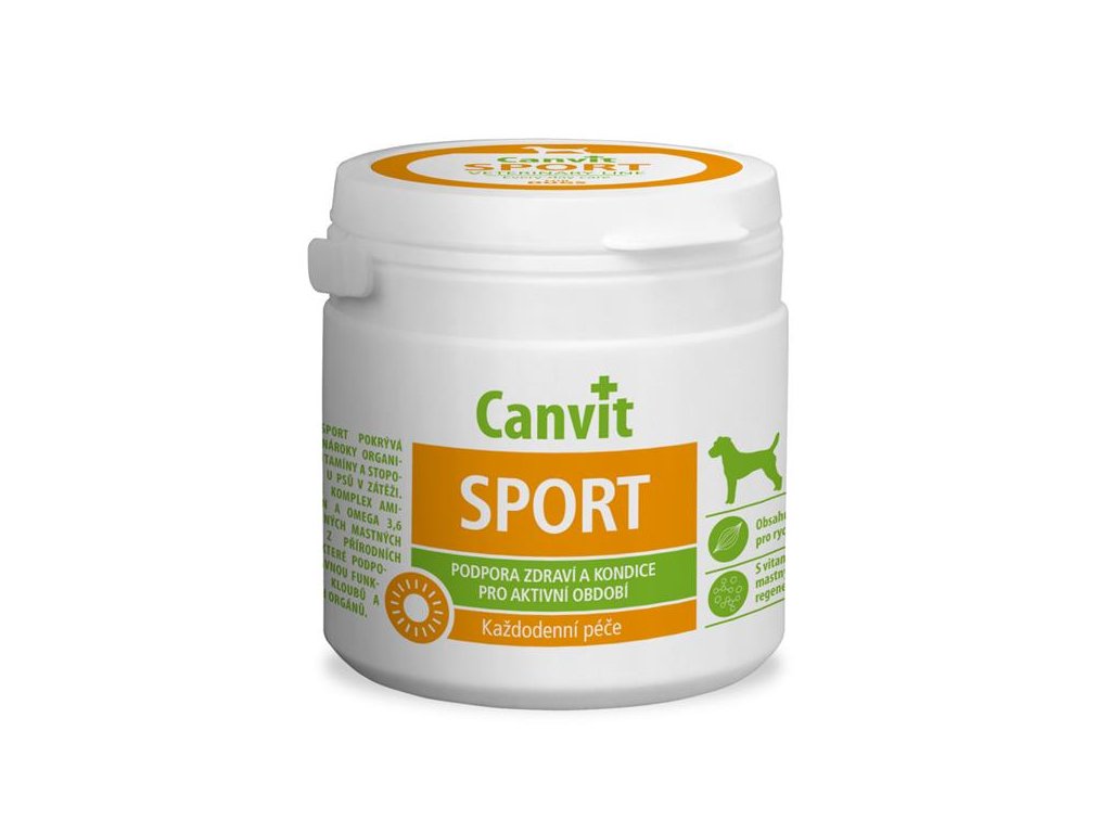 Canvit Sport je bohatým zdrojem rychle dostupné energie, aminokyselin, vitamínů a omega-3 a omega-6 nenasycených mastných kyselin pro aktivní a sportující psy. Doplněk stravy je vhodný také pro psy v rekonvalescenci, feny po porodu a při laktaci.
