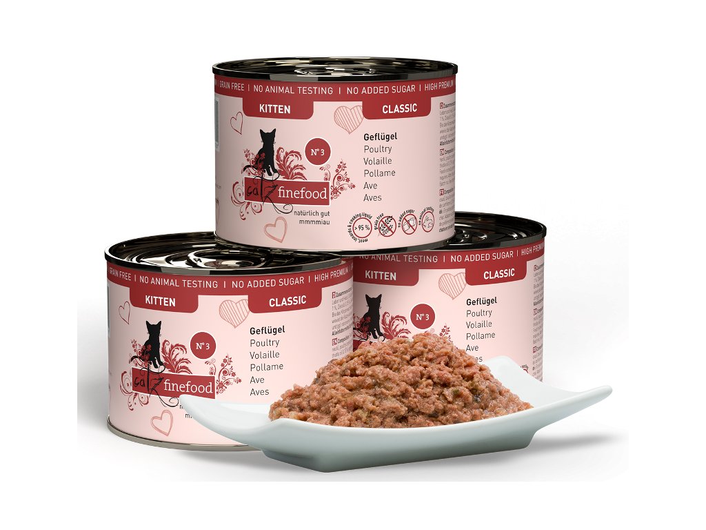 Konzistence krmiva Catz finefood Classic Kitten je o něco jemnější než u řady Catz finefood Classic, aby si na tomto krmivu pochutnaly i ty nejmenší kočky. Samotná receptura Catz finefood Classic Kitten se ale v základu řadě Classic podobá, což je velká výhoda při přechodu z kotěcího krmiva na dospělácké. Takový přechod nenaruší již zaběhlé trávicí pochody a nehrozí alergické reakce ani jiné potíže, které se se změnou krmiva mohou pojit. Navíc, protože je kočka již obeznámena s chutí jejího krmiva, změnu bez problému přijímá, což ocení majitelé vybíravých koček a koťátek.