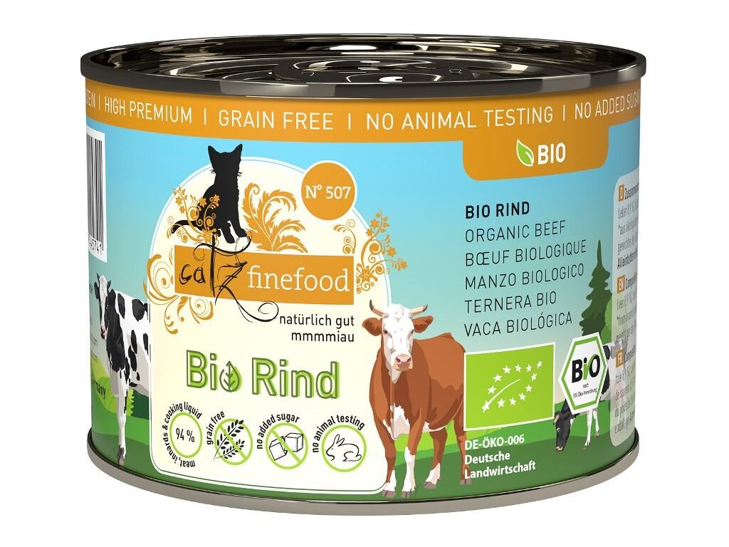 Kompletní monoproteinové krmivo v bio kvalitě, které zajistí vaší kočce vyváženou stravu. Všechny suroviny jsou certifikované a pochází z ekologického zemědělství. Kočky milují výtečnou chuť čerstvě zpracovaného masa a drobů té nejvyšší kvality. Krmivo Catz finefood Bio je ideální také pro kočky s citlivým zažíváním či potravinovými alergiemi.