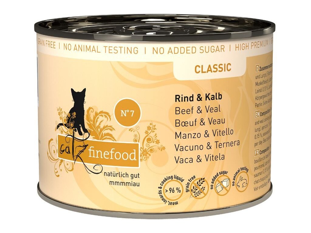 Lahodná konzerva pro kočky, která obsahuje vysoký podíl telecího masa, zdraví prospěšný ananas a mořské řasy. Konzervy Catz finefood obsahují pouze suroviny vysoké potravinářské kvality a svým složením odpovídají přirozené kočičí stravě. Jsou bez konzervantů, umělých barviv a dochucovadel. Konzervy neobsahují geneticky upravené suroviny. Jedná se o kompletní krmivo.