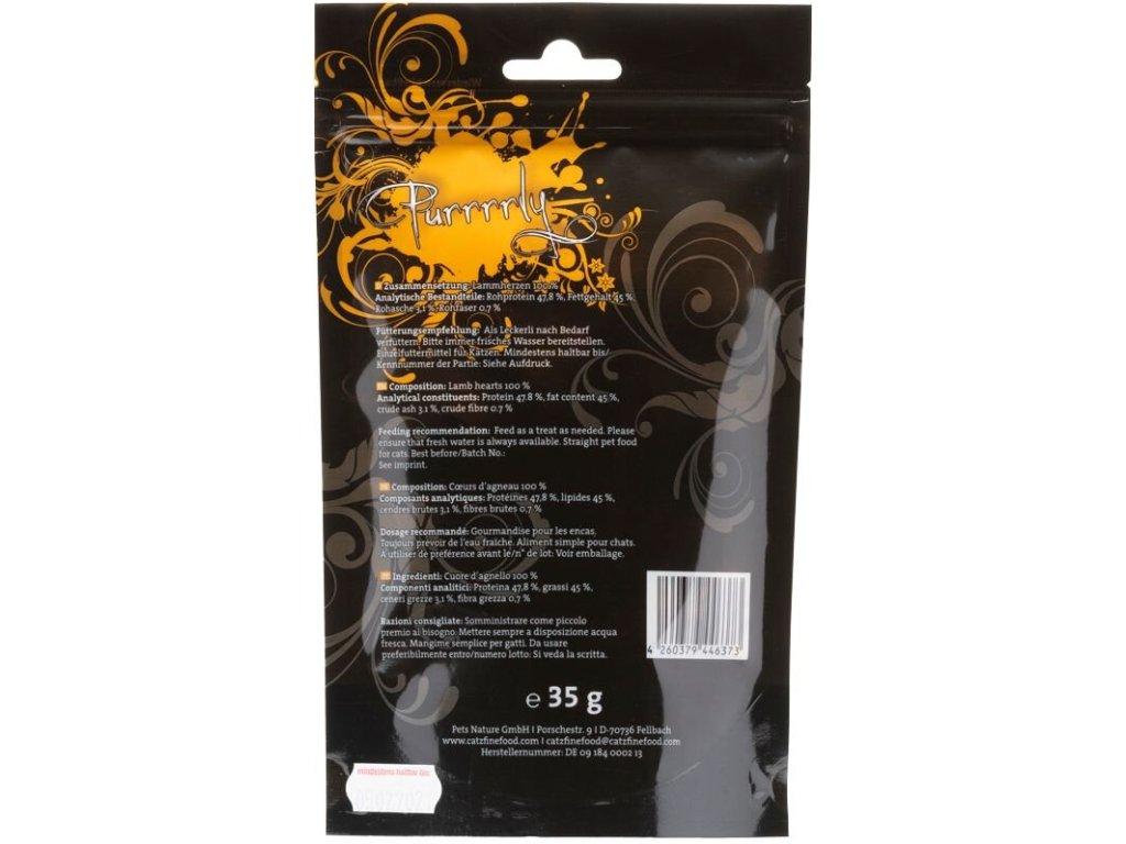 Catz finefood Purrrrly N° 107 – mrazem sušená jehněčí srdíčka 35g