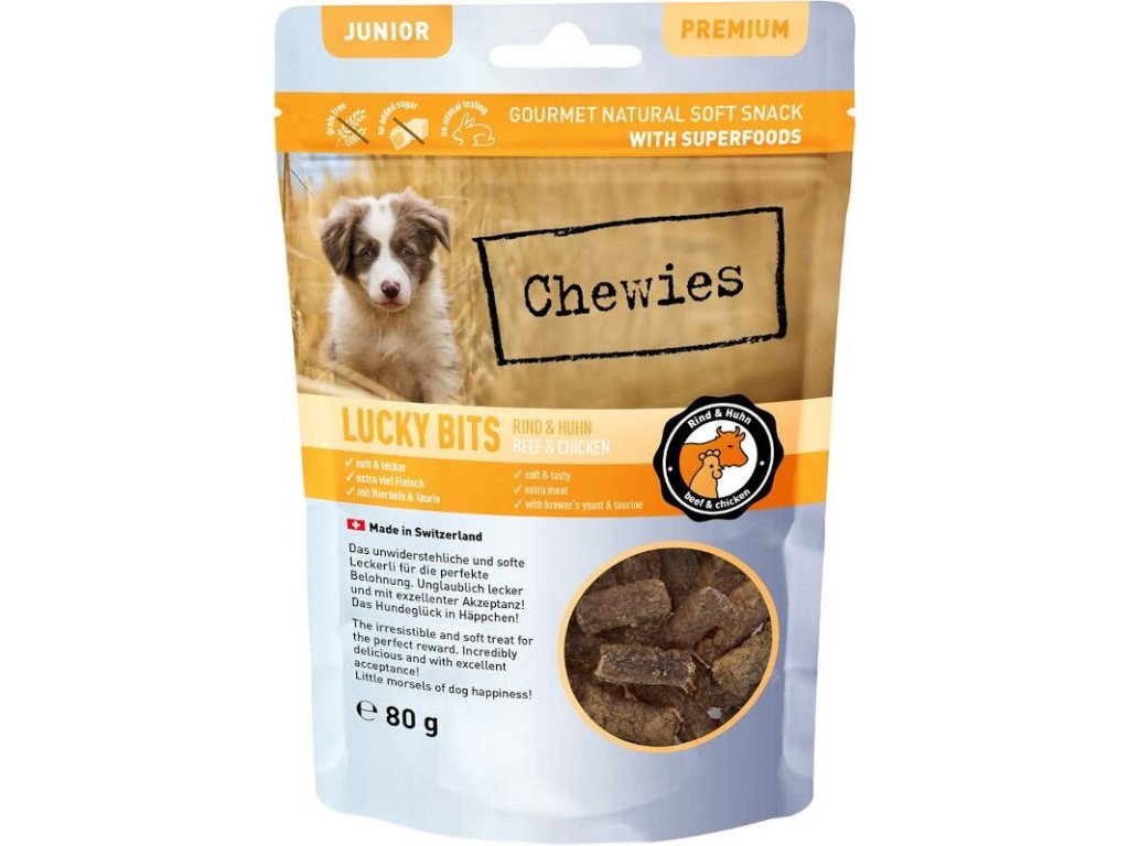 Chewies Lucky Bits jsou pamlsky s extra vysokým obsahem masa, které poslouží jako skvělá odměna a zdravá svačinka nejen při tréninku.