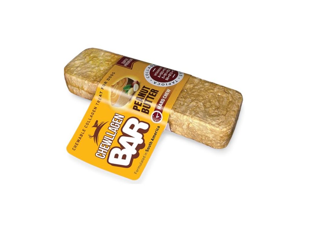 Odolná žvýkací tyčinka Chewllagen BAR Peanut Butter je speciálně navržená pro podporu zdraví kloubů, mobility a celkové pohody psů. Obsahuje vysoce kvalitní hydrolyzovaný kolagen, který hraje klíčovou roli při udržování zdraví pojivových tkání – tedy kloubů, kůže a šlach. Bezobilná (grain-free), bezlepková tyčinka je navíc obohacená o důležité vitamíny (A, C, E, D3, K3, B1, B2, B6 a B12) a minerály, neobsahuje žádný přidaný cukr ani GMO a má nízký obsah tuku, což z ní činí ideální pochoutku i pro psy se sklonem k nadváze.