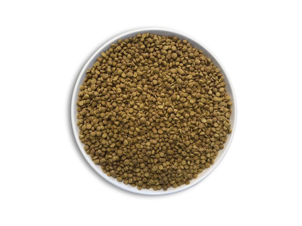 pšenice, kukuřice, mikronizovaná sója, pekařské výrobky, hrášek, rohovník, dehydrovaná ovocná dřeň (hruška, citrusy a jablko (5 %, zdroj fruktooligosacharidů/FOS)), hmyzí moučka (Tenebrio molitor, 3 %), semena kamélie (0,5 %), slunečnicový olej, inulin z agáve (0,5 %), olej z kamélie (0,5 %), inaktivované pivovarské kvasnice (0,1 %, zdroj mannan-oligosacharidů/MOS), uhličitan vápenatý a pšeničné klíčky.