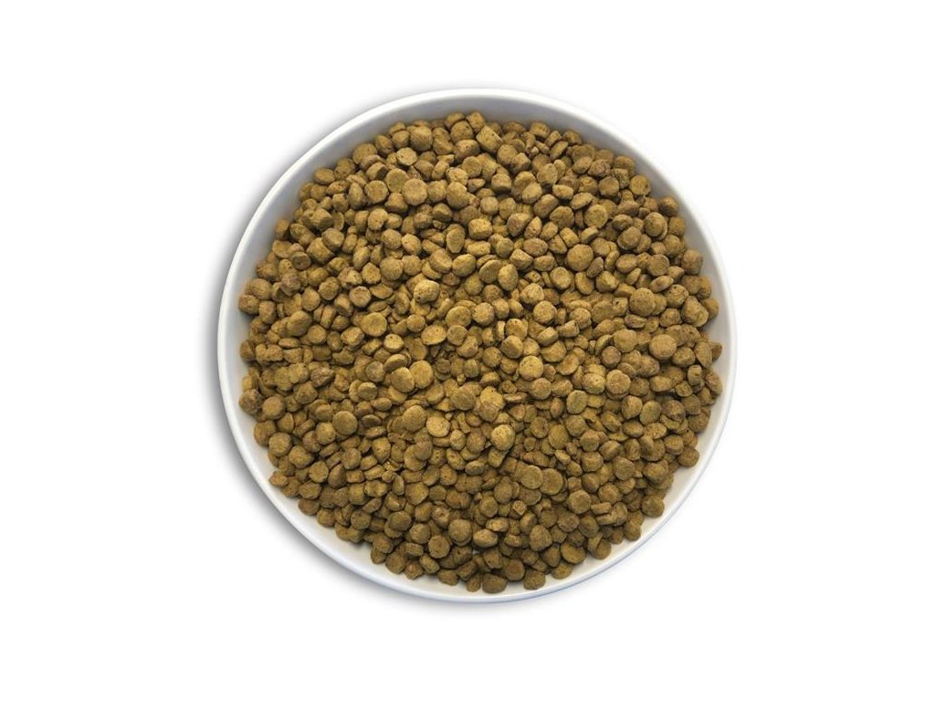 pšenice, kukuřice, mikronizovaná sója, pekařské výrobky, hrášek, rohovník, dehydrovaná ovocná dřeň (hruška, citrusy a jablko (6 %, zdroj fruktooligosacharidů/FOS)), hmyzí moučka (Tenebrio molitor, 4 %), semena kamélie (0,5 %), slunečnicový olej, inulin z agáve (0,5 %), olej z kamélie (0,5 %), inaktivované pivovarské kvasnice (0,1 %, zdroj mannan-oligosacharidů/MOS), uhličitan vápenatý a pšeničné klíčky.