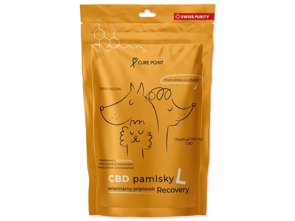 Veterinární a 100% veganské CBD pamlsky vyvinuty pro podporu zdraví a vitality psů velkých plemen (nad 35 kg), které mají celou řadu benefitů a vitamínů. Je vhodné je podávat ve stresových situacích jako je např. návštěva veterináře, oslavy Nového roku nebo v případě odloučení od majitele na delší dobu.