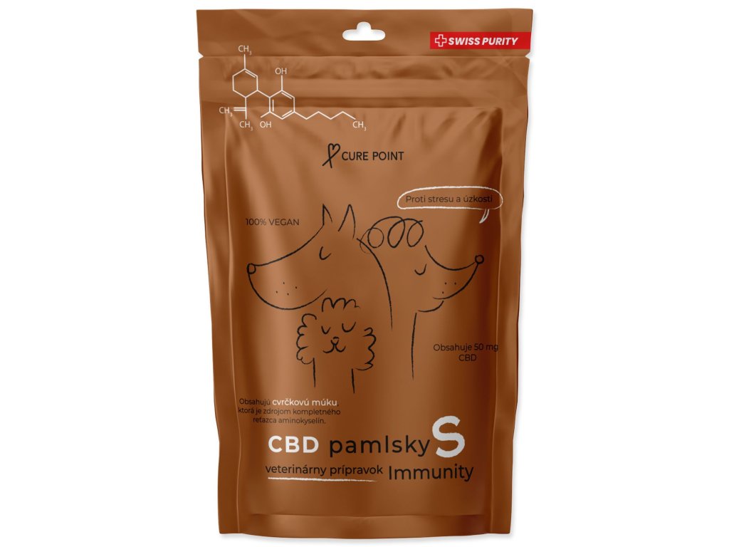 Veterinární a 100% veganské CBD pamlsky vyvinuty pro podporu imunity a vitality psů malých plemen (do 10 kg), které mají celou řadu benefitů a vitamínů. Je vhodné je podávat ve stresových situacích jako je např. návštěva veterináře, oslavy Nového roku nebo v případě odloučení od majitele na delší dobu.