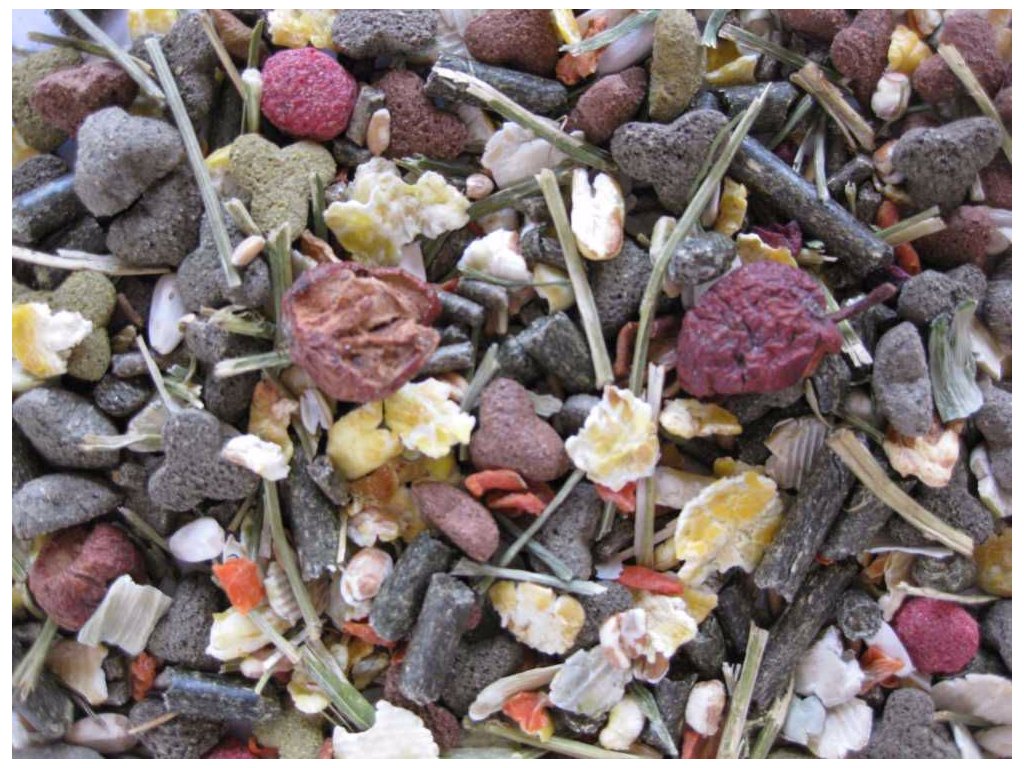 Neobyčejně pestrá a vyvážená směs obsahující více než 20 přírodních ingrediencí. Směs splňuje nutriční požadavky zakrslých králíků a je obohacena extrudovanými granulemi, hrubou vlákninou, kousky ovoce a zeleniny. Směs má vysoký obsah hrubé vlákniny. Hrubá vláknina hraje důležitou roli v podpoře zažívacího traktu, stimuluje zažívání a snižuje risk střevního zánětu. Navíc je důležitá k získání dobré rovnováhy mezi snadno stravitelnou a nestravitelnou vlákninou tak aby optimálně podporoval střevní flóru. Směs je obohacena zahradními bylinami, zahrnujícími stonky petržele, stonky naklíčené vojtěšky, , celer, tymián, koriandr, pepř. Krmivo rovněž obsahuje vojtěškové stébla. Vojtěška má vysoký obsah vlákniny a proto stimuluje zdravou funkci střev a napomáha vyrovnání střevní flóry. Směs je bohatá na Vojtěšku. Vojtěška je výborná surovina pro králíky – má vysoký obsah vlákniny a ta hraje důležitou roli v trávení králíka. Navíc má vojtěška vysoký obsah proteinu, obsahuje dobře vyvážené amino kyseliny, je bohatá na minerální látky jako je vápník, magnezium, draslík, železo,....Naklíčená semínka vojtěšky zvaná alfaalfa (5) jsou výrobným zdrojem vitamínu E. Sušená naklíčená semínka obsahují průměrně 120mg/kg vitamínu E. -100% přírodní-Vyrobeno z vysoce kvalitního surového materiálů. Nejčistější jsou díky unikánímu čistícímu systému. Čištěno 4x!Výrobce Deli nature je belgická společnost s vysoce kvalitním krmivem pro ptáky, hlodavce a hospodářská zvířata. Kořeny této společnosti sahají k firmě Beyers který byl známí pro svoji vynikající kvalitu. Díky těmto kořenům se krmiva Deli Nature mohou opírat o dlouholeté zkušenosti s výrobou a použitím krmiv. Složení: deriváty rostlinného původu, obiloviny, zelenina (min. 18%, z toho 48% hrachové vločky, 15% kousky mrkve, 7% pórek, 5% červená řepa), bylinky (min. 12%), extrakty rostlinných bílkovin, ovoce (min. 2%, z toho 80% jablka) , minerály, semena, různé cukry, oleje a tuky, kvasnice. Analytické složky: hrubý protein 15,5%, hrubé tuky 3,5%, hrubá vláknina 16%, popeloviny 6%, vápník 0,84%, fosfor 0,43%, lysin 0,43%, methionin 0,15%, sodík 0,09%Nutriční doplňkové látky na kg: E672 – vitamín A 15000 m.j., E671 – vitamín D3 1500 m.j.,3a700 – vitamín E (all-rac-alfa-tocopherylacetaat) 49mg, E300 – vitamín C 60mg, E6 – zinek (monohydrát síranu zinečnatého) 35g, E1 – železo (monohydrát síranu železnatého) 43mg, E4 – měď (síran měďnatý) 5,2mg, E5 – mangan (monohydrát síranu manganu) 15mg, E2 – jód (jodid vápenatý) 0,41mg, obsahuje přísady schválené EK.Skladujte v suchu a chladu.Králík by měl průměrně sníst 30g krmiva za den na 1kg svojí váhy. Králík by měl mít vždy dostupnou čerstvou vodu a seno.