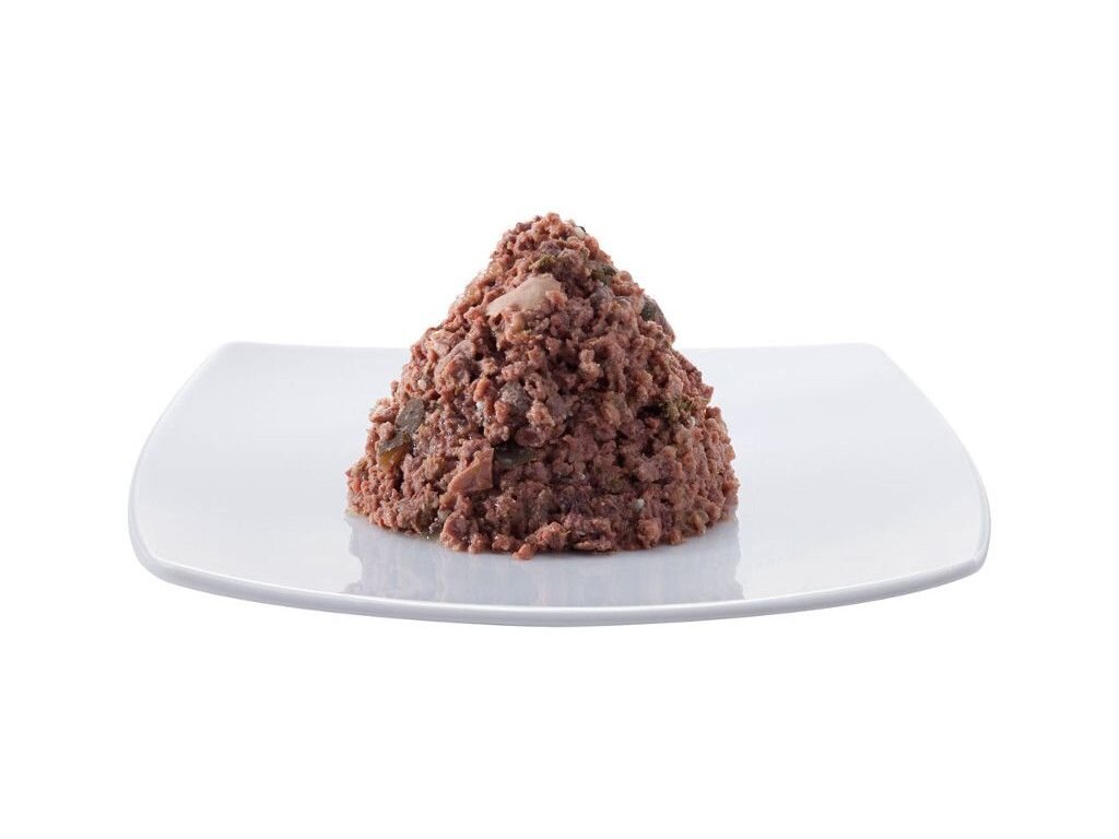 Složení: jehněčí maso 65% (svalovina, srdce, játra, plíce a dršťky), pitná voda 25,7%, cuketa 4%, brusinky 3%, špenát 1%, minerály 1%, hroznový olej 0,2%, šalvěj 0,1%.