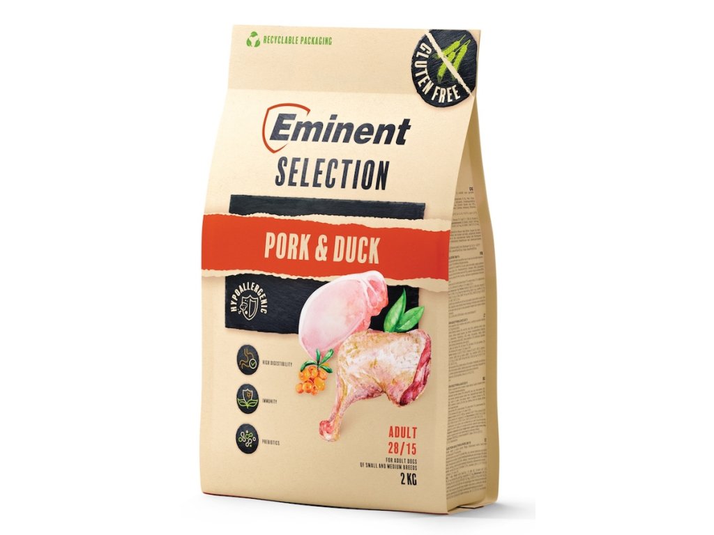 Obsahuje proteiny z vepřového a kachního masa, které dodávají všechny esenciální aminokyseliny pro správnou funkci svalů, tkání a imunitního systému.