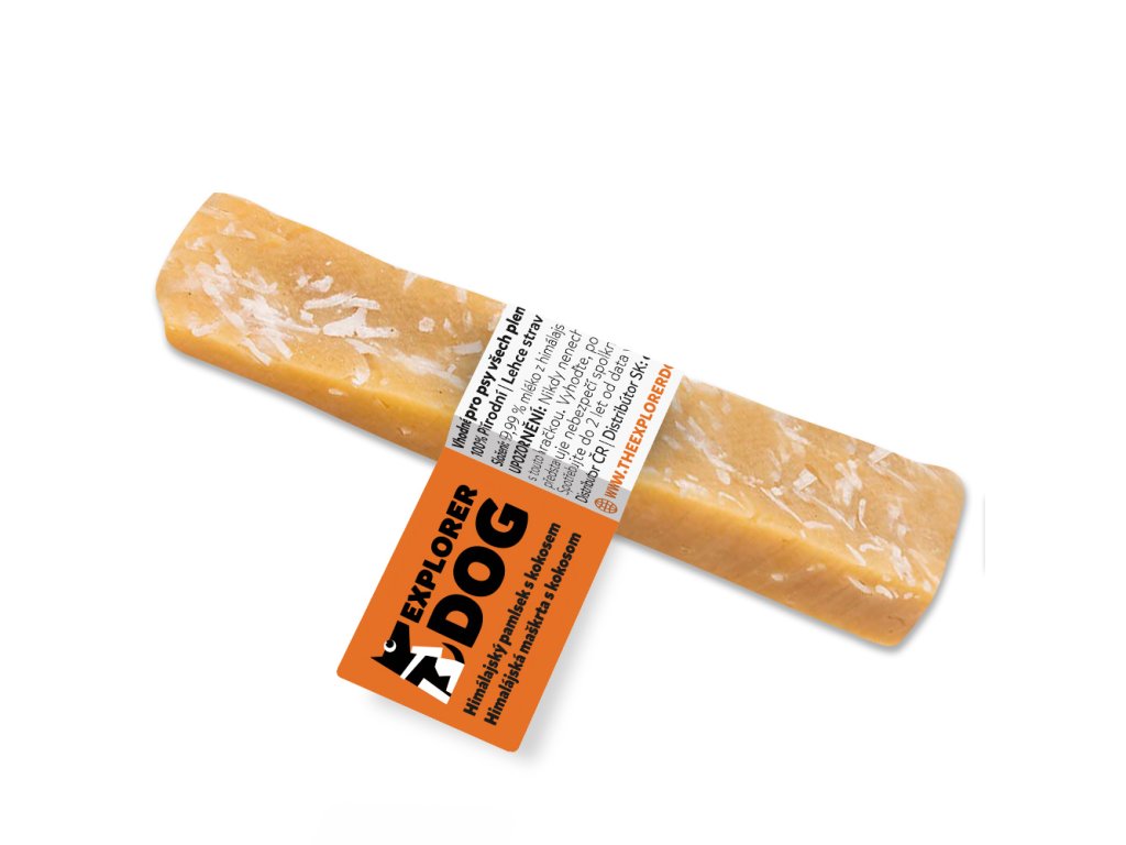 Dentální tyčinka ze sýra se sušeným kokosem jsou tvrdé, zdravé a přirozené pamlsky pro psy, které podporují dentální hygienu a pomáhají odstraňovat zubní kámen.