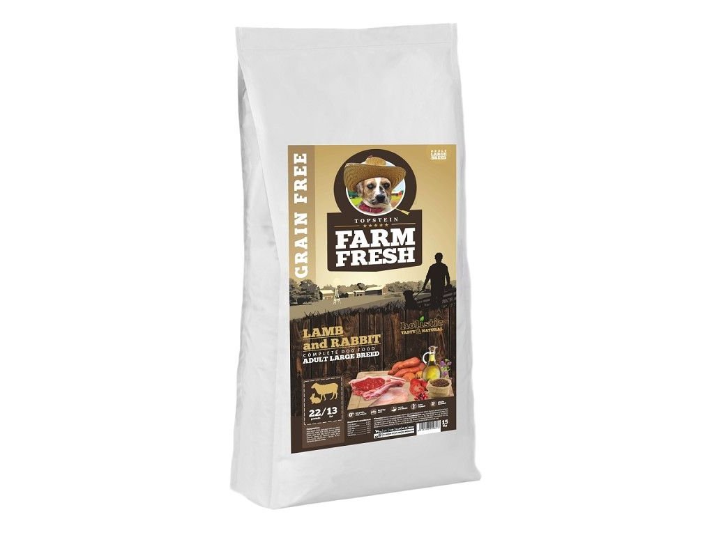 Složení: sušené sladké brambory (35%), sušené jehněčí maso (20%), hrachový škrob, sušené králičí maso (10%), drůbeží tuk, vojtěška, sušená rajčata, sušená mrkev, cukrová řepa, sušená vejce, lněné semínko, vitamíny a minerální látky, lososový olej, brusinky, inulin, juka, glukosamin, chondroitin, taurin, M.O.S. methionin, L-carnitin.