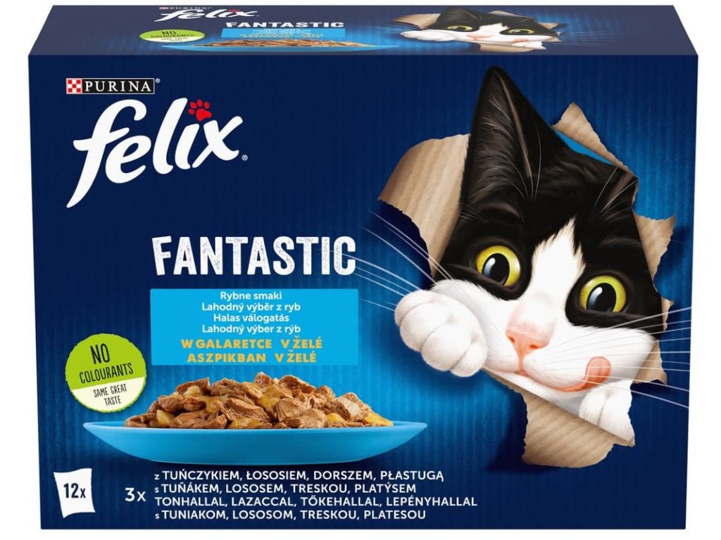 Felix Fantastic hovězí, kuře, losos, pstruh v želé 12 x 85 g