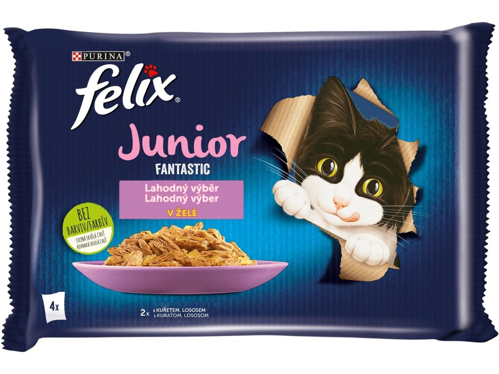 FELIX Junior je vhodný i pro březí nebo kojící kočky, které také potřebují krmivo bohaté na energii, aby se postaraly o svá budoucí koťata. Po 12 měsících je vaše kotě dospělé a připravené si užívat lahodnou řadu Felix Adult.