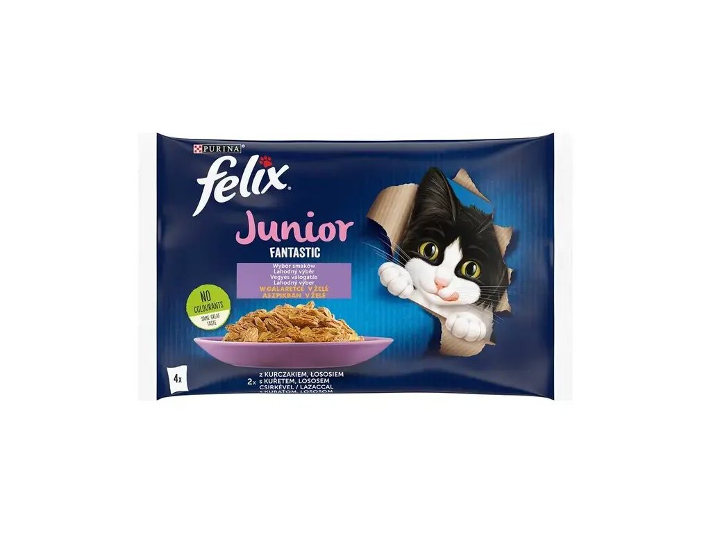 Felix Junior je kompletní krmivo pro koťata. Jednoduše vyprázdněte kapsičku a je to. Vyberte si neodolatelnou příchuť a postupujte podle následujícícho krmného návodu.