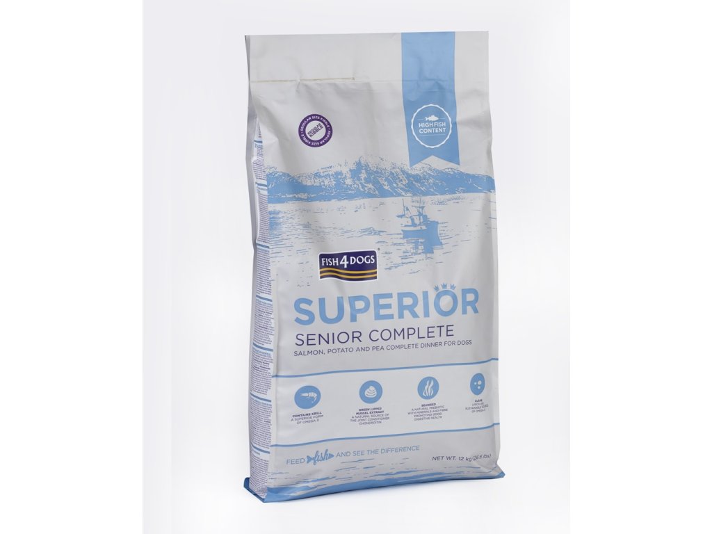 Granule jsou také vhodné pro starší psy díky nižší kalorické hodnotě, která odpovídá nižší úrovni aktivity a vysoké stravitelnosti ryb, která je vhodná pro pomalejší trávicí systém starších psů.
