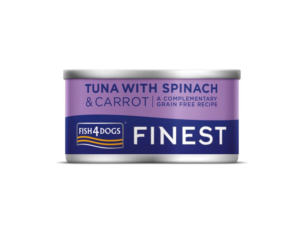 FISH4DOGS Konzerva pro psy Finest tuňák s mrkví a špenátem 85 g