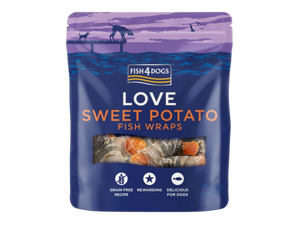 FISH4DOGS Pamlsky pro psy LOVE rybí závitky s batáty 100 g