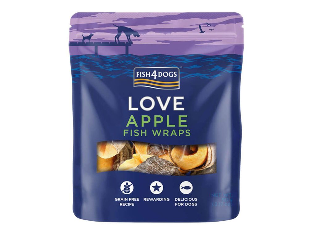 FISH4DOGS Pamlsky pro psy LOVE rybí závitky s jablkem 90 g