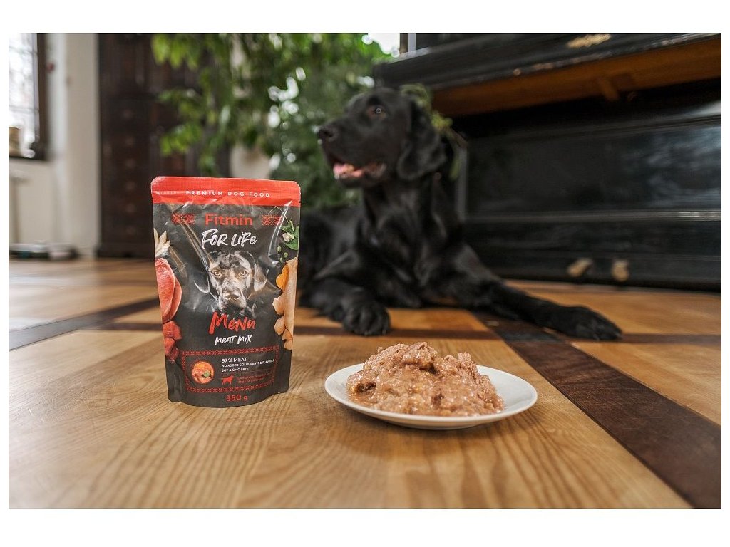 Fitmin For Life Menu Meat Mix masová vanička se vrací v novém obalu - kapsa je lepší na uskladnění i na cestování. Váš pes si tuto masovou kapsu zamiluje.