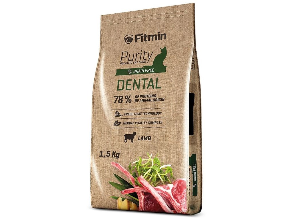 Kompletní krmivo Fitmin pro dospělé kočky s pozitivním účinkem na ústní dutinu. Až 78% proteinů živočišného původu.