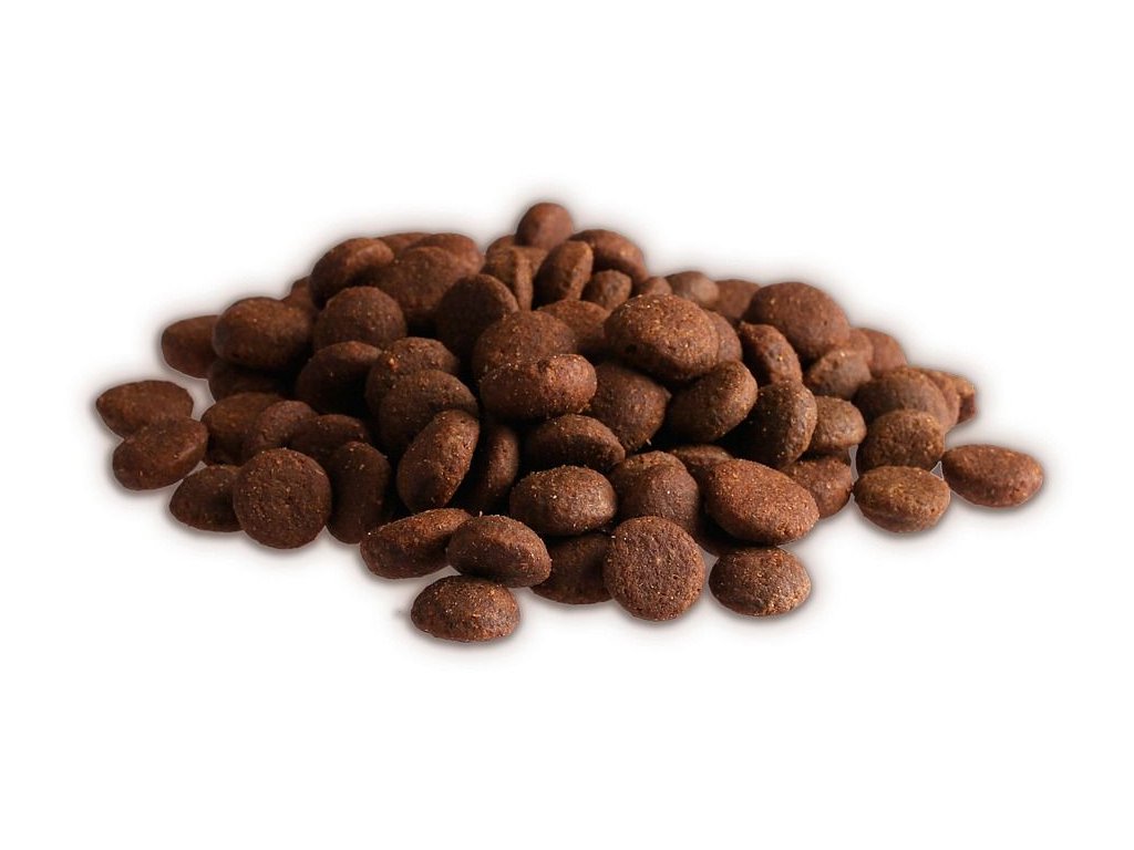 Maso (35% zvěřina čerstvá, 16,2% rybí maso sušené, 3,6% jehněčí maso sušené, 3% vepřová játra, 2% sleď čerstvý), rýže 33%, drůbeží tuk, celozrnná rýže 7%, řepná vláknina, lněné semínko, pivovarské kvasnice, jablka 2,2%, za studena lisovaný olej z norských lososů (ošetřen tokoferoly), vojtěška, inaktivované kvasinky rodu Saccharomyces cerevisiae, bylinný komplex 1% (nať kopřivy dvoudomé a meduňky lékařské, lístky smetánky lékařské 0,23%, květy heřmánku pravého a lípy srdčité), slepičí vejce, špenát 0,4%, houba shiitake 0,4%, kořen čekanky, semeno ostropestřce mariánského, dýně 0,1%, žraločí chrupavka, juka, glukosamin, chondroitin-sulfát, komplex přírodních antioxidantů.