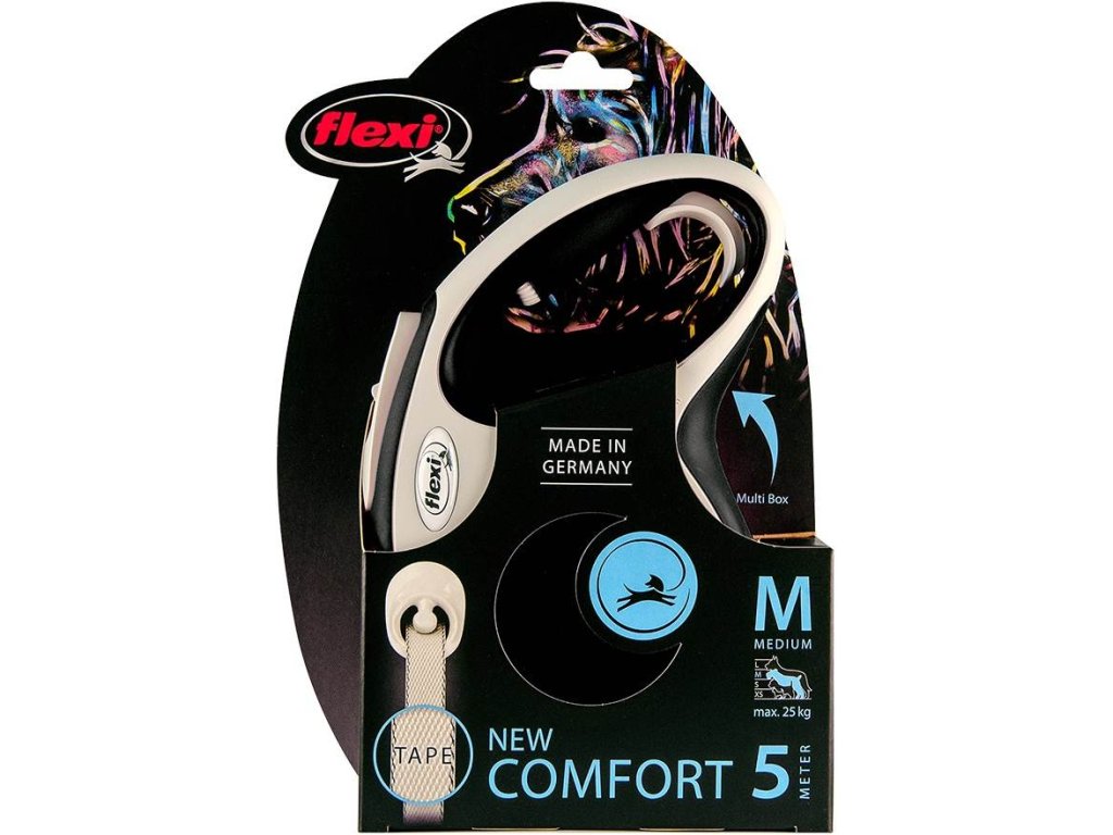 Flexi New Comfort M vodítko pásek 5m/25kg černá