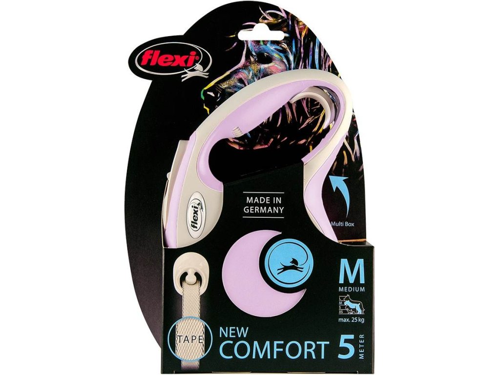 Flexi New Comfort M vodítko pásek 5m/25kg růžová