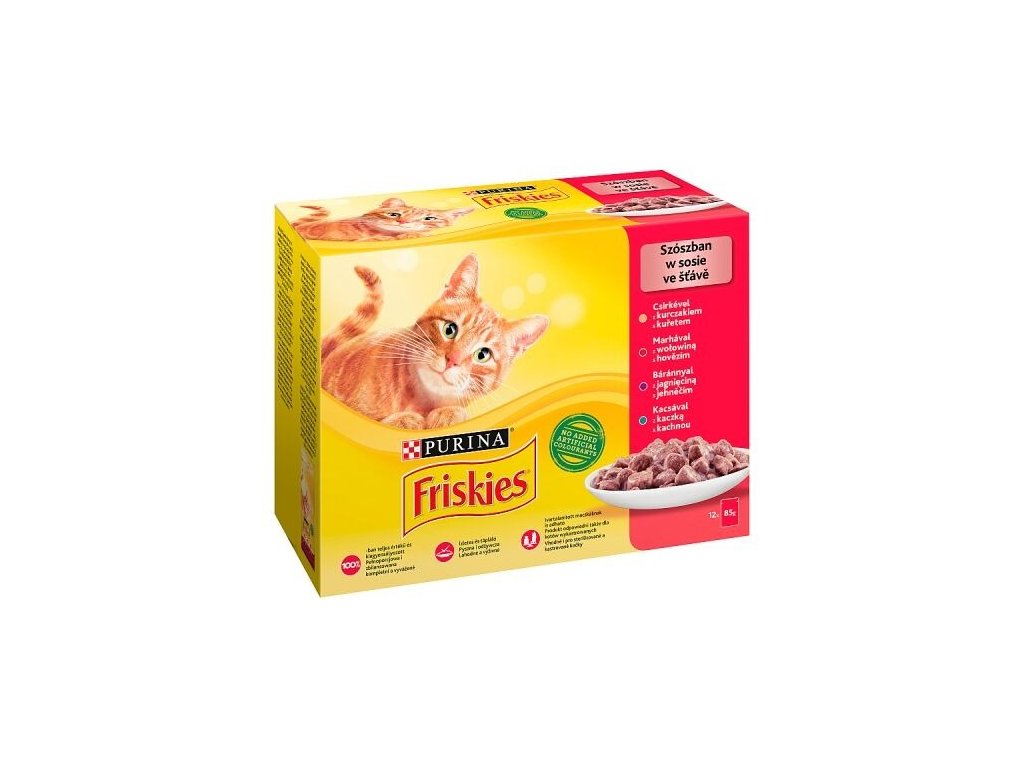 Friskies s kuřetem hovězím jehněčím kachnou v šťávě 12 x 85 g
