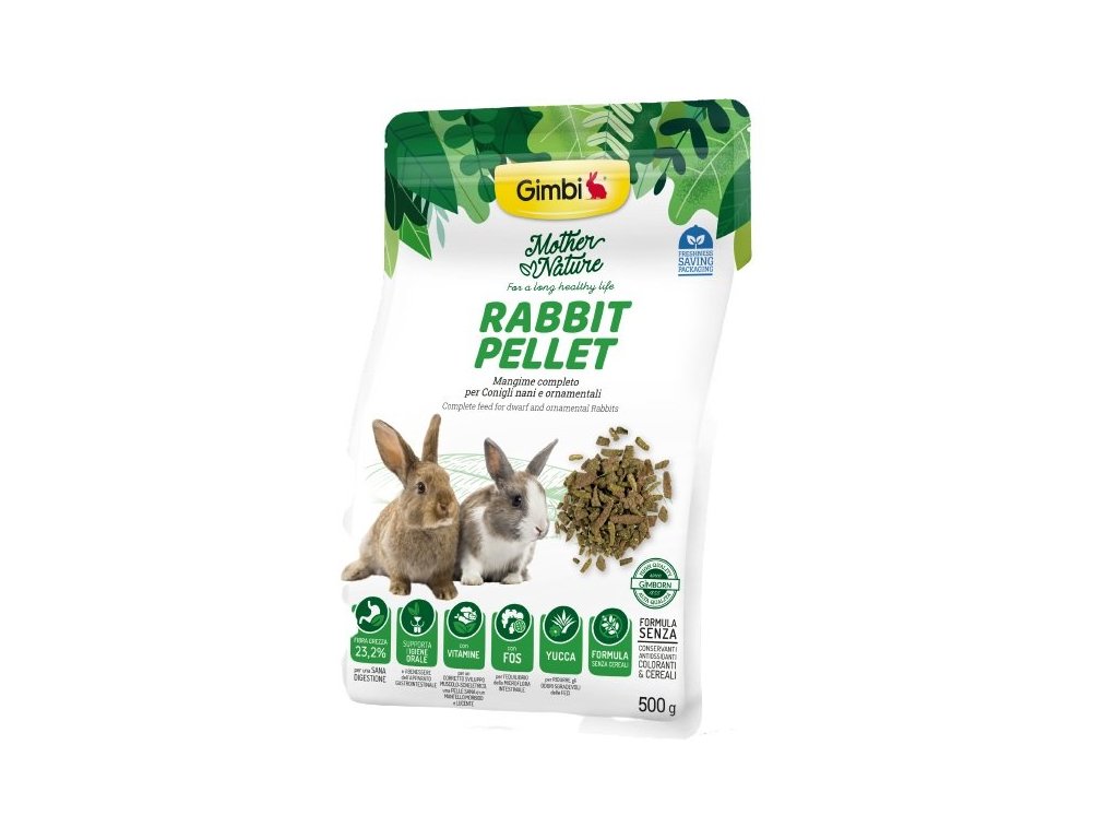 Krmivo od GIMBI obsahuje potřebné množství bílkovin, tuků a vitamínů. Vysoký obsah hrubé vlákniny prospívá přirozenému broušení zubů a trávení. Obsahuje řadu lahodných přísad včetně bylinek, květin, ovoce a zeleniny, které pomáhají předcházet vybíravosti králíků. FOS a prebiotika juky zmírňují zápach stolice.