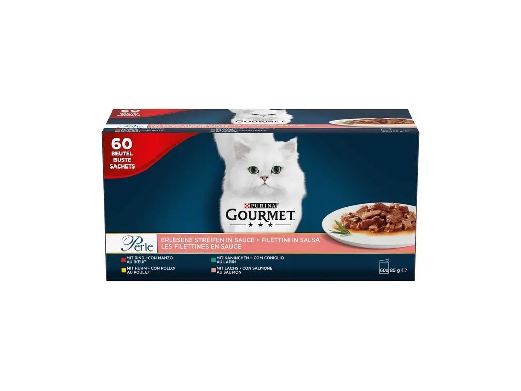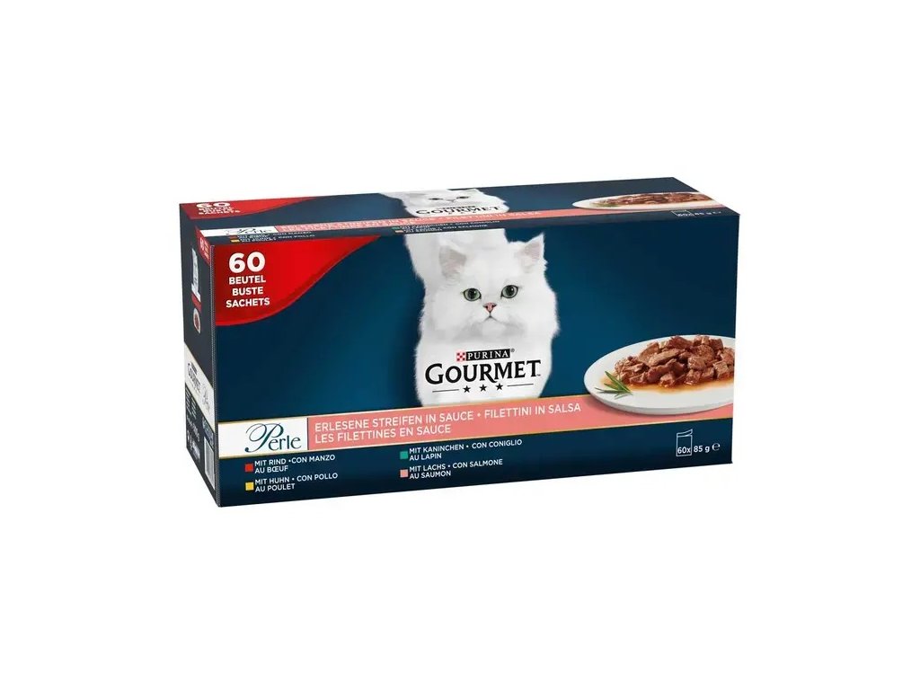 Multipack Gourmet Perle je velké a výhodné balení extra chutných kapsiček. Základem jsou drobné filetky s hovězím nebo kuřecím masem, králíkem a lososem. Každý kočičí mlsoun si přijde na své. Výhodou velkého balení je zásoba na delší dobu, kdy můžete příchutě různě střídat. Kapsičky jsou vhodné pro dospělé kočky.
