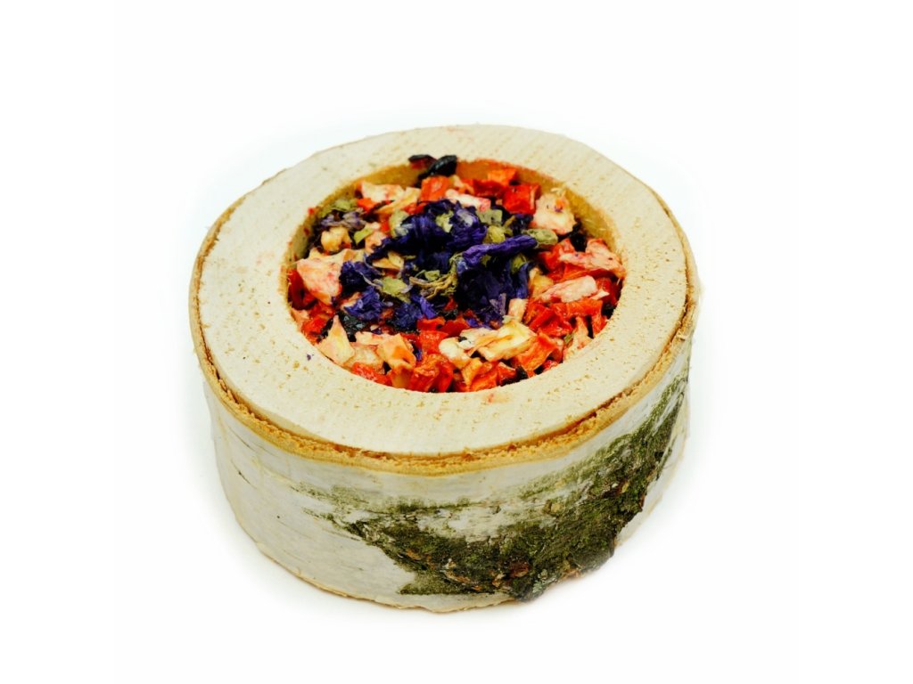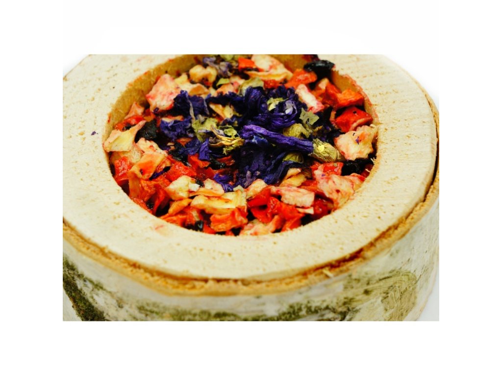 Složení: květ ibišku, proso, řepka, petržel, tuřín, bílá rýže, dari, lněné semínko, oves loupaný, červené proso, cardi, konopná semena, divoká rýže, pohanka, ostružina, travní semena, škrob.
